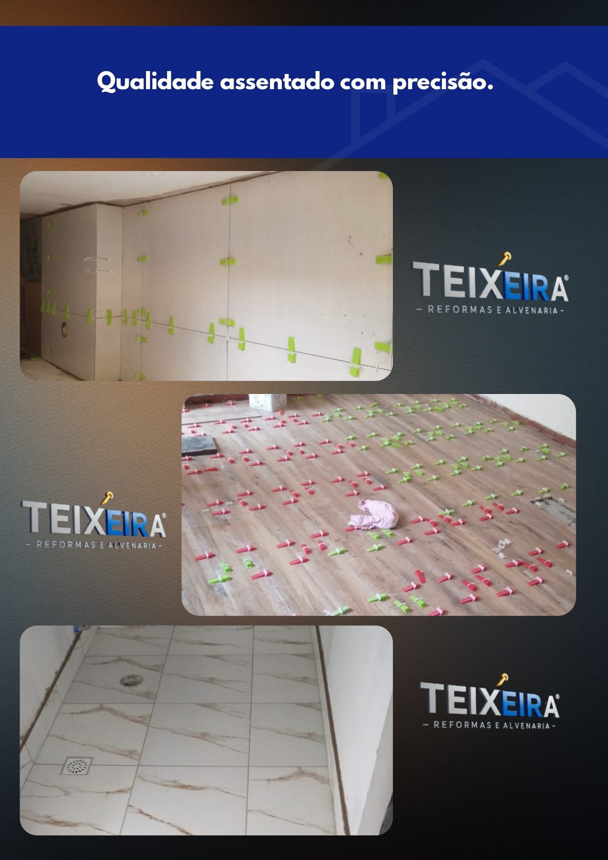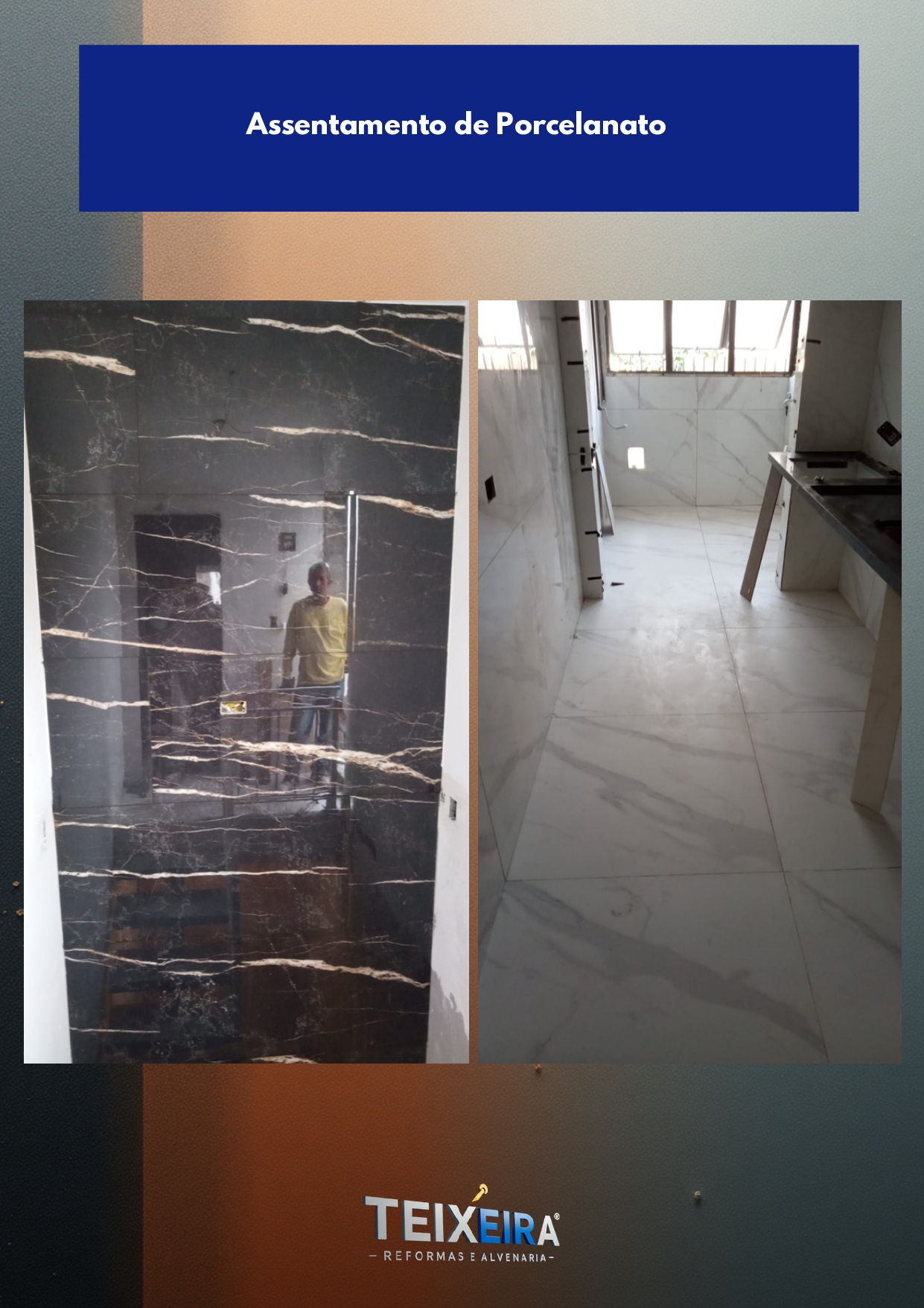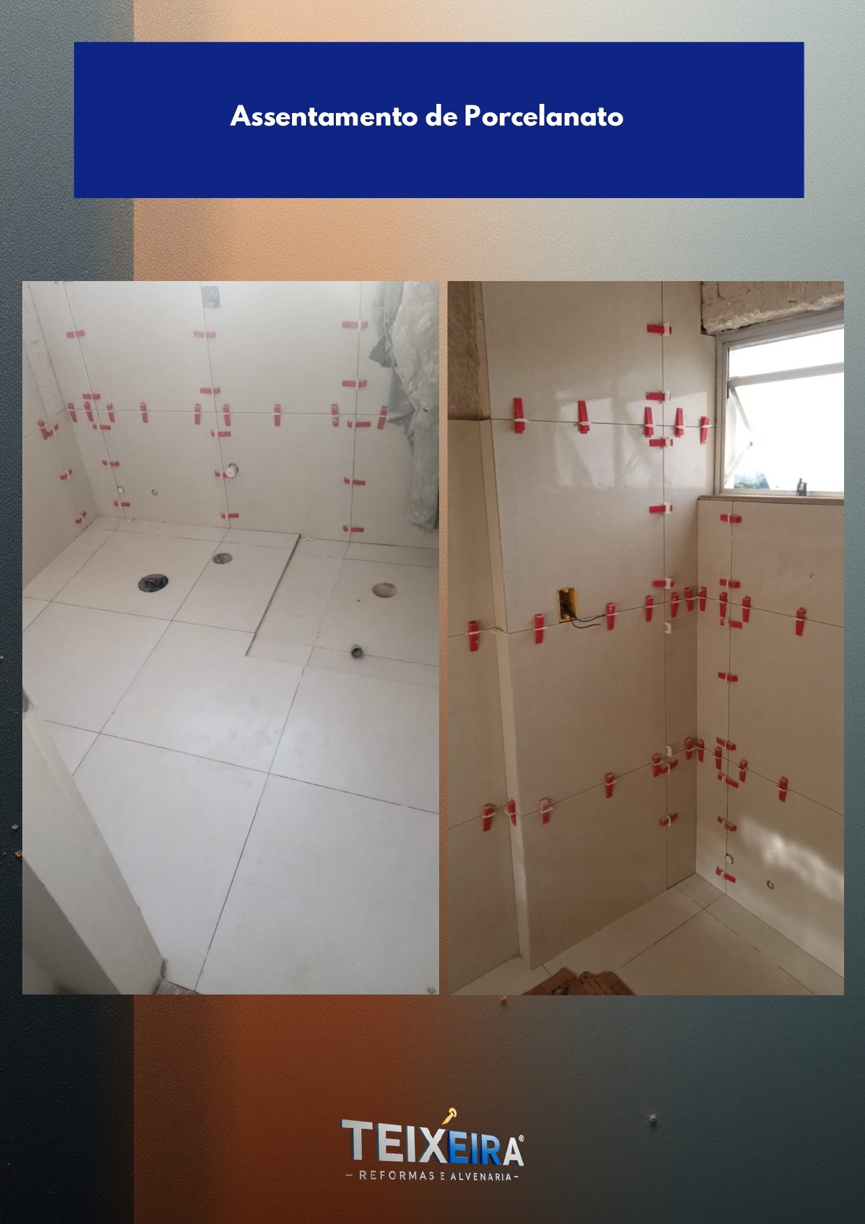 - Pisos: Assentamento de porcelanato com técnica de dupla colagem